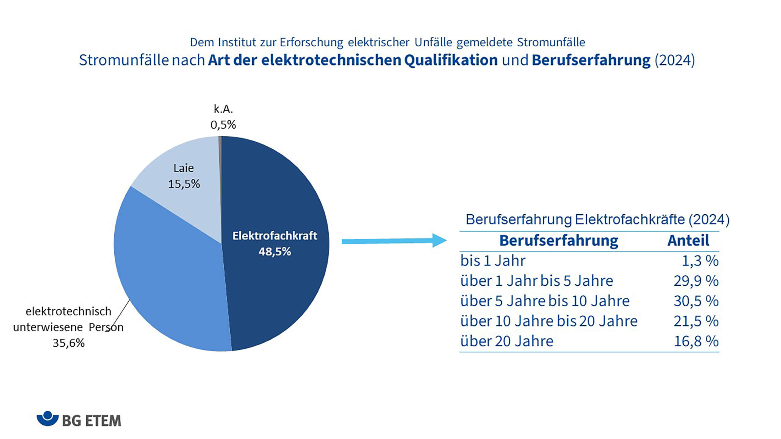 Die Zahlen zeigen, dass Stromunfälle nicht nur Berufsanfänger betreffen. Im Gegenteil – das Risiko verteilt sich über alle Erfahrungsstufen: