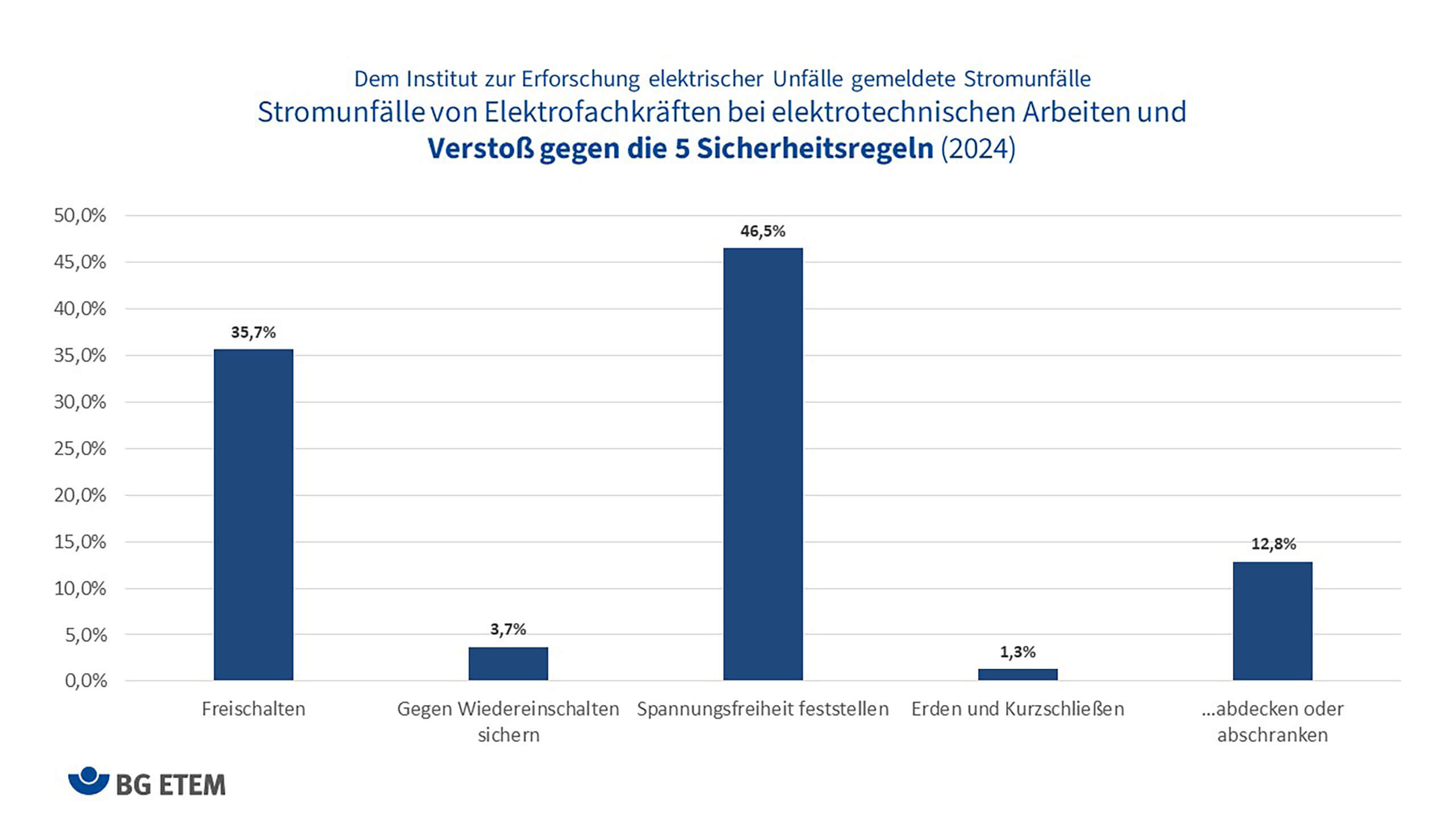 Wie ein roter Faden zieht sich eine der Grundlagen für das Arbeiten im elektrotechnischen Bereich als Unfallursache durch die Auswertungen.